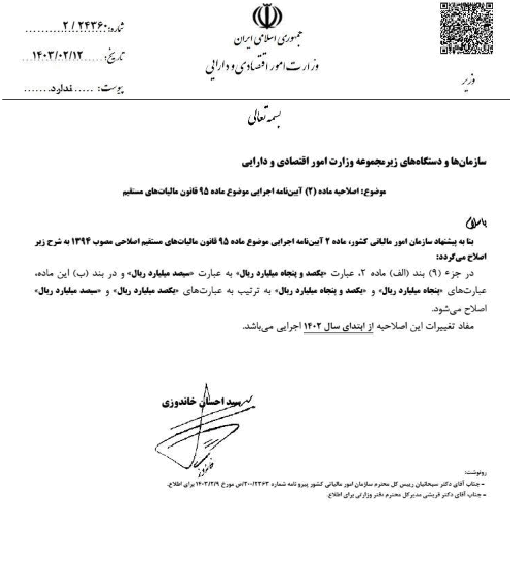 اصلاحیه ماده (3) آیین نامه اجرایی موضوع ماده 95 قانون مالیات های مستقیم مصوب 1403,02,12 با اصلاحات و الحاقات بعدی