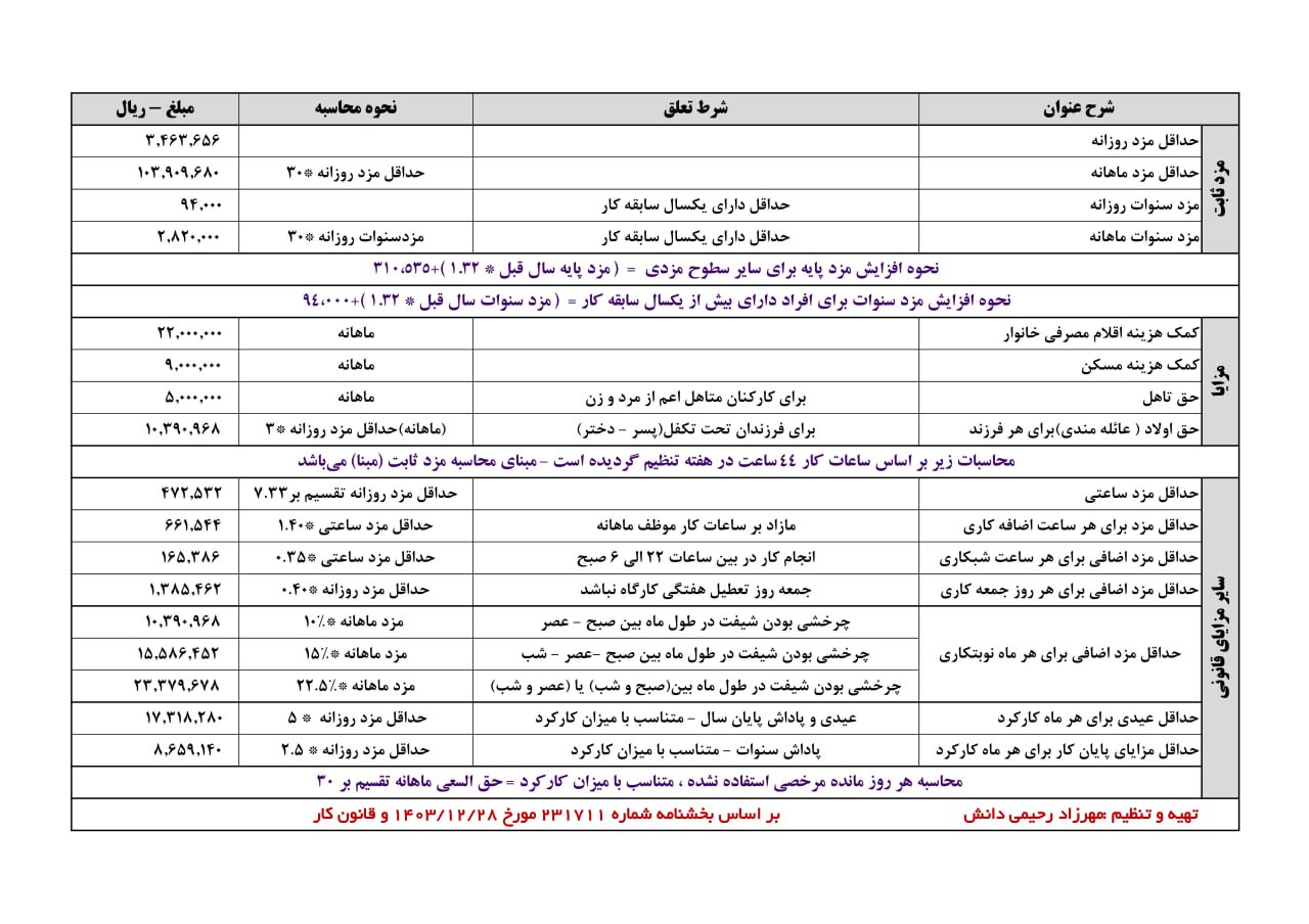 لینک اطلاعات کامل در خصوص حقوق دستمزد سال 1404